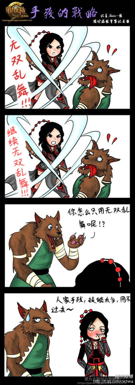 无双乱舞!继续无双乱舞!我看我们小萨满对这个技能真是情有独钟~或者这又是她的经典台词?不禁让阿九想起了郭芙蓉的那句排山倒海!C9丰富的技能、多样自由的组合,小萨满你敢不敢再来个厉害点的?漫画分享第九大陆——手残的战略