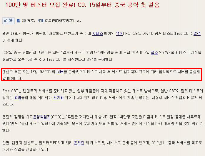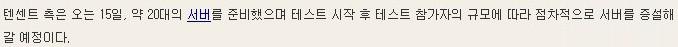 来自韩服前线的八卦……据韩国媒体报道:腾讯为了15日的测试,准备了约20台服务器,开测以后根据参加人数的规模,预计会增加服务器。我们大家来讨论下,你们觉得够吗?以下是原新闻截图: