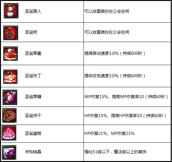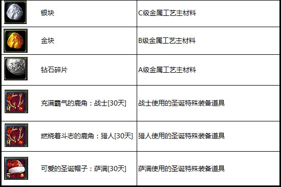 活动期间,玩家通关专家、大师级以上副本,即可通过打开通关宝珠获得“雪之结晶” 道具,每收集齐10个“雪之结晶”可以和活动雪人NPC进行圣诞礼物箱子 兑换,圣诞礼物箱子里有各类各样的珍宝道具。